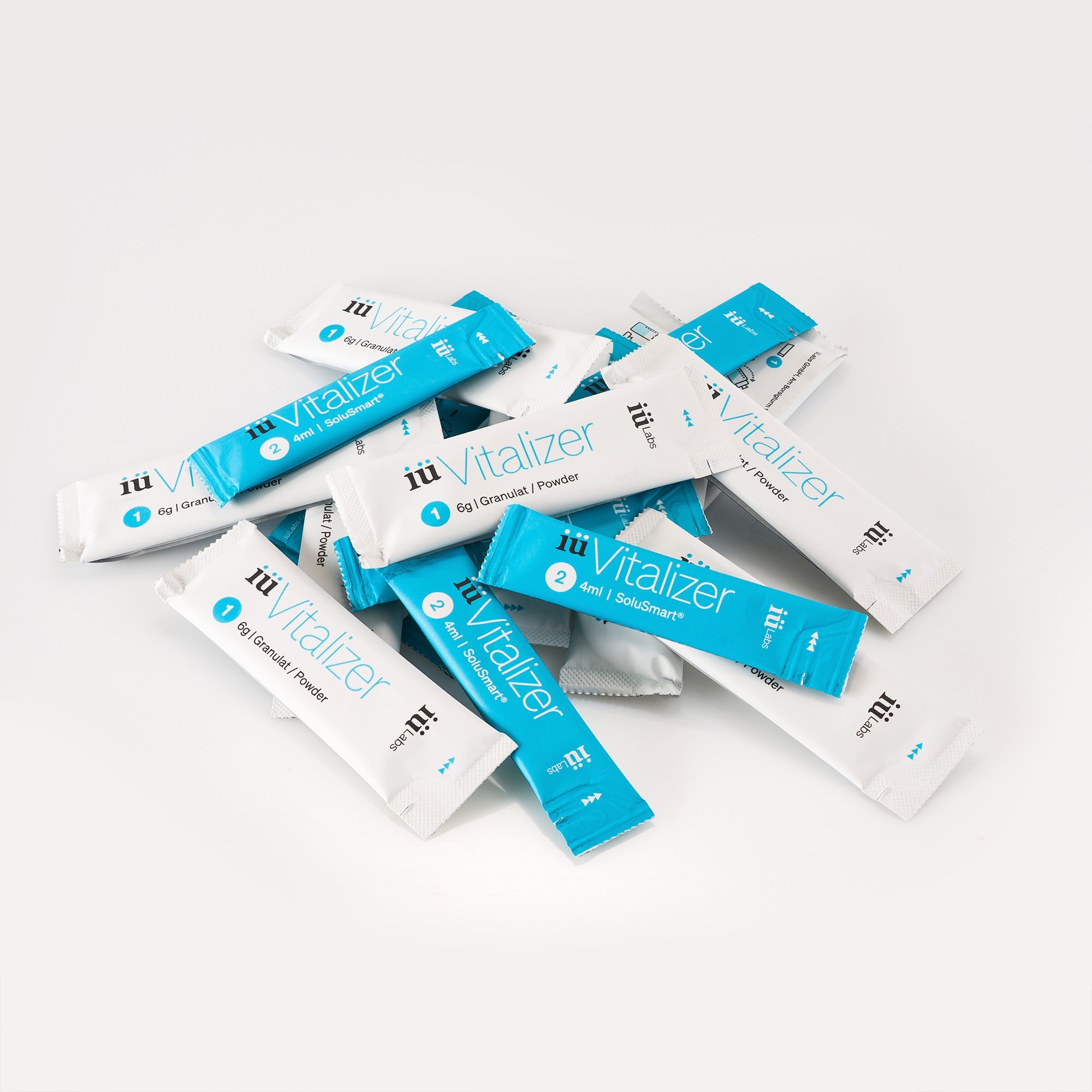 Der iüVitalizer ist ein innovatives Nahrungsergänzungsmittel mit über 30 sorgfältig ausgewählten bioaktiven Inhaltsstoffen. Durch die besondere Zubereitung kurz vor der Einnahme werden diese von Dir aktiviert – und entfalten so ihr volles Potenzial.